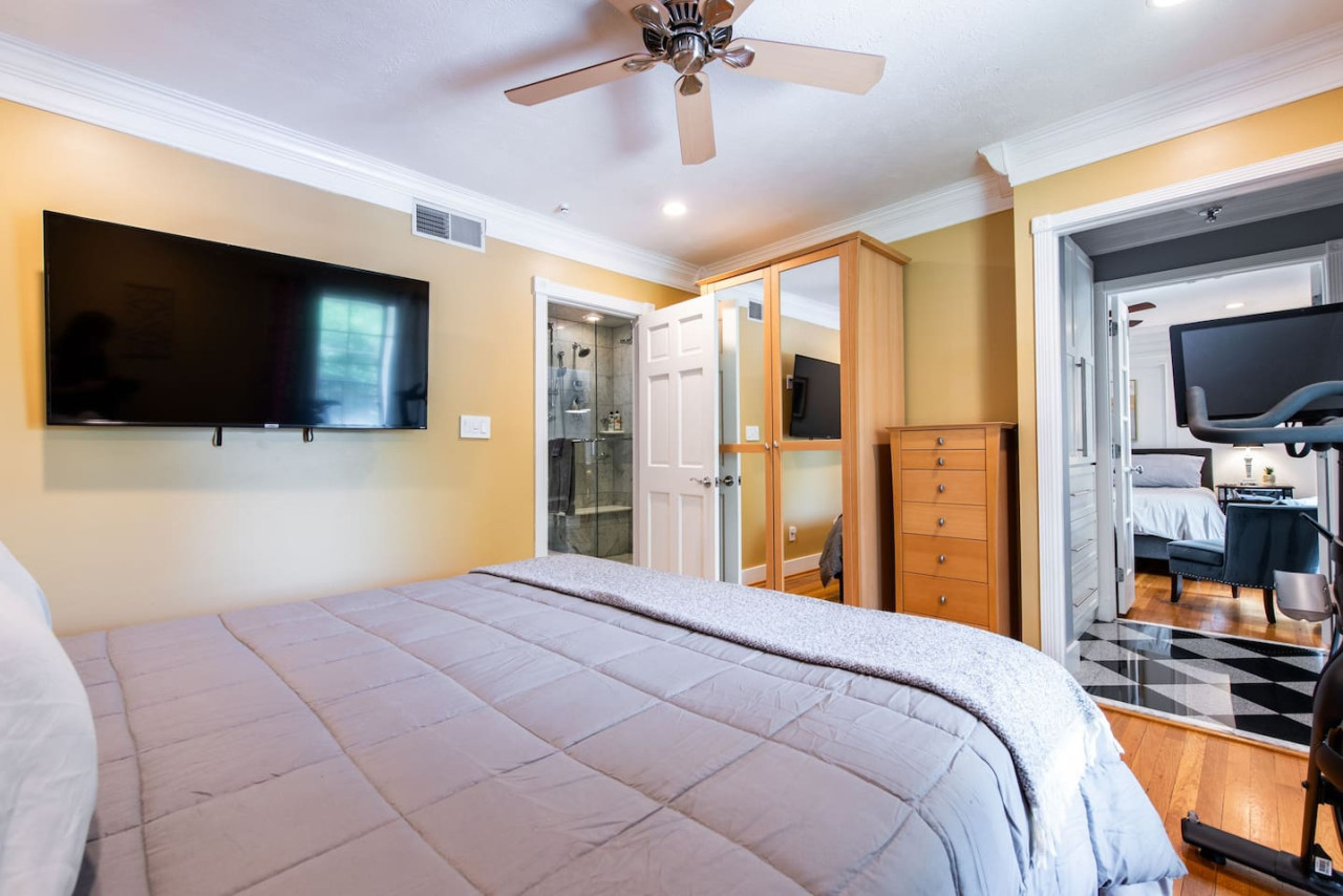 Live like a local in Louisville’s most sought-after neighborhood for young professionals and families. Rich in history and packed with wall to wall entertainment; this neighborhood carries a premium price tag for its aspiring residents. This condo began life two decades ago as a single unit, but the owner purchased the property next door and gutted the entire second level to create the masterpiece before you! You will truly enjoy this home away from home. No Smoking or Vaping Inside the Home! NO Marijuana Smoking!! This condo is completely redone with zero expense spared; granite, Carrara marble, and high-end fixtures are placed thoughtfully and flawlessly throughout the entire space. A quick walk through will reveal that not a single detail was overlooked, from the wainscoting precisely executed in every room, to the beautiful and exquisite appliances, era correct hardwood floors, incredible built-ins, and intuitive touches throughout. Not to mention the master bathroom that just recently underwent a renovation totaling more than $30k!!! The living room has multiple seating areas and a large 55" TV equipped with Amazon Fire TV sticks. There are also two additional TVs; 1 in a master bedroom, and another in the kitchen at the Carrara marble bar. Mirrors are everywhere throughout the home and there are THREE showers (2 toilets, so 2.5 bath) so there won't be fighting for space to get ready for a night out. Don't hesitate, this is an extremely unique property to be available for short term rentals in Louisville. This 3-bedroom, 2.5 bath executive suite was built for a king and queen, and includes TWO master suite bedrooms (and an additional guest room which is absolutely stunning as well), each of which has an outdoor balcony space. This place is +A CLASS, CLASS, C L A S S. Perfect for couples wanting a weekend getaway, solo travelers, or large groups, you absolutely will not regret a stay here. +1,500 Square feet and 2.5 baths absolutely assure space and privacy for all guests in parties of any size, while staying under one roof in Louisville’s most desirable and safe neighborhood. This condo is great for entertaining and small groups. This condo is the entire upper floor of the building in the picture. There are NO shared spaces with any other occupants. Additionally, once you enter the condominium you there are no steps to climb up. The entire 2nd floor is on one floor with no additional steps. All 3 beds are tempurpedic beds. They are very comfortable! Central Hallway and Steps: There are 4 steps with railings on both sides (see picture of the front of the building) before the entrance door to the central hallway. The first floor has 2 units and the second floor has 1 unit. In order to get to the condo on the 2nd floor there are 2 small sections of steps (both sections have 6 steps (handrail on one side and the wall on the other) (see picture). The hallway entrance is 36" wide and also the steps themselves are 36" wide. (standard size for steps). The steps are NOT steep and are carpeted. The central hallway is well lit and has been recently remodeled. This condo is also very kid, infant friendly. It has door locks located on the upper portion of the doors in order to keep kids in/ out of certain areas. There is also a high chair, pack and play, baby tub, plug covers, board games and quite a bit more. Feel free to ask any questions. Peloton bike in the bedroom This is a Non Smoking Home. No Smoke or Vaping Inside the Home! Please DO NOT book my place and attempt to have a party!!! No bus or RV parking on site. There is not enough room for a large RV or bus. It is for travelers needing a place for themselves and their family. That is it! Nothing else. On Street parking, however in an extremely safe area with no permits required. You are welcome to park in the drive spaces in front of the building if they are available, those are not assigned! On the day of your check-in you will be sent a unique key pad code that will allow you entry into the condo, the entire place is yours for the duration of your stay! If you have pets with you, please pick up after them during your stay. This is a Non Smoking Home. No Smoke or Vaping Inside the Home! I am available to you as needed! Please think of me as your personal concierge; whether you’re looking for the best Italian hotspot, great live music,or even antiques. I’m your guy! The Walk Score for the Condo is an 80! The Neighborhood: St Matthews is well within Louisville proper and is the crown jewel of the city’s affluent east end. Extremely safe, lots to do; full of culture, art, & entertainment! You’re off the primary strip (Shelbyville Rd.) to ensure a very quiet and comfortable night’s sleep, yet close enough to the main drag that you can literally walk just about anywhere. Nightlife within a 10 minute walk: -Tin Roof -Drake’s -Gerstle’s Place -Molly Malones -Diamond Pub & Billiards -Jack’s Lounge -Saint’s & Skybar Restaurants within a 10 minute walk: -Del Frisco’s – Steakhouse -Havana Rumba – Cuban -Silvio’s – intimate traditional Italian -Mellow Mushroom – Pizza -DiOrio’s – Pizza -Café Lou Lou – southern Distance from other Louisville notable attractions: -10 Miles to Churchill downs -7 Miles from downtown, 4th Street Live, Riverfront, and the KFC Yum! Center -1 mile to Crescent Hill / Restaurant Row -within 10 miles of multiple distilleries on the Urban Bourbon Trail -Less than 2 miles from shopping at Mall St. Matthews and Oxmoor Mall Of all of our properties this one is really the most walkable, you can get out on foot and make it to just about anywhere you’d like to be in a matter of minutes! If you’d like to drive or Uber, both are extremely accessible, you won’t have a single issue! ***a note about early check-in & late check-out*** We manage multiple properties in the greater Louisville area and cannot accommodate early and late requests. It creates a logistical nightmare for us! Please be